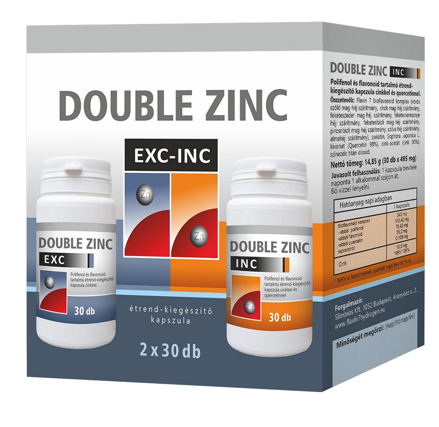 INC kapsz.: bioflavonoid: 340 mg, /ebből polifenol: 113,42 mg; flavonoid: 79,42 mg; quercetin: 39,2 mg; rezveratrol: 0,108 mg/, cink: 10,5 mg* NRV: 105% (* NRV - a felnőtteknek ajánlott napi bevitel %-a.)